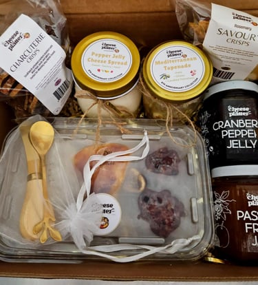 A curated selection of cheeses, cured meats, crackers, fruit, nuts, and gourmet pairings for every occasion.