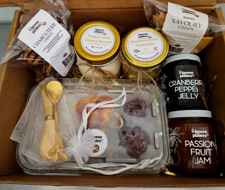 We also offer a range of essentials that elevate every board, including our signature jams, dips, and tapenades crafted to complement and enhance the grazing experience.