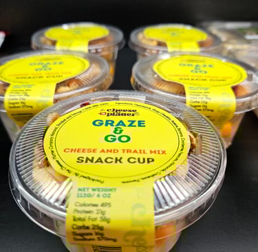Our signature snack cups combine premium cheese with trail mix favorites in a perfectly portioned grab-and-go format, available at select retail locations.