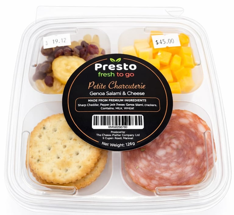 Three Premium Cheeses, Genoa Salami, Mediterranean Olive mix, Exotic Dried Fruit Locally Made Jams, and Artisan Crackers come together in this elevated graze box, perfect for light entertaining